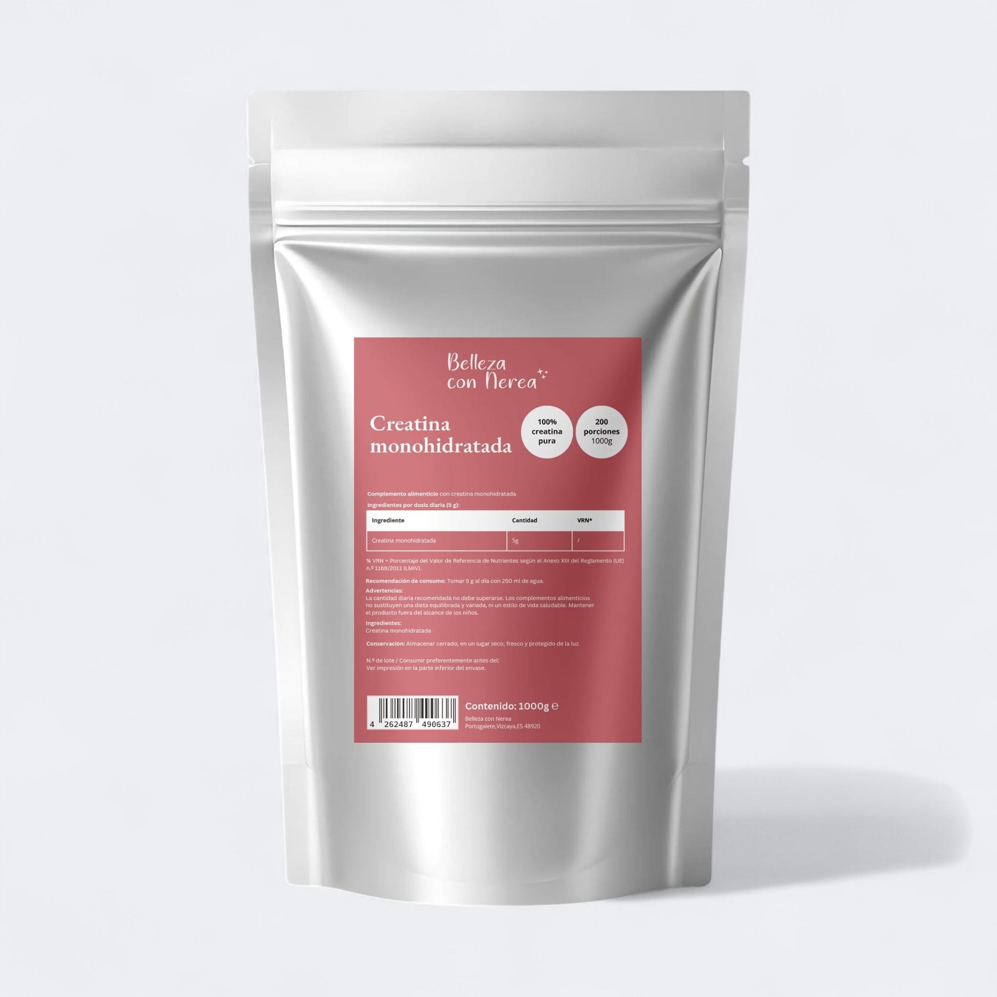 Creatina monohidratada 1kg Belleza con Nerea es un suplemento esencial tanto para el cuerpo como para la mente. Su fórmula de creatina 100% pura y micronizada mejora la producción de energía en células musculares y neuronales, contribuyendo a un mayor bienestar físico, claridad mental y envejecimiento saludable.